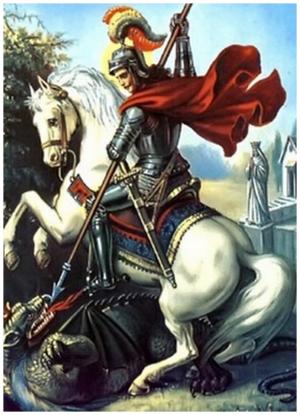 Estava então no exército o maravilhoso cavaleiro de Cristo, Jorge, o qual era natural de Capadócia, Ásia Menor (atual região da Turquia), de uma família nobre e tradicional na cidade. De pai e mãe cristãos, que muito zelaram pela sua instrução e educação, fora criado desde menino na sagrada religião cristã. Sendo Jorge ainda moço, morreu o pai, oficial do exército imperial, em uma batalha. Por ser ele bom cavaleiro, foi da Capadócia para a Palestina com sua mãe que era natural daquela região, onde tinha fazenda. E como tivesse idade para a guerra, foi instituído por capitão, e em pouco tempo sua personalidade, sua coragem e seu porte foram notados pelo Imperador Diocleciano, que o nomeou Conde. Ignorando ser aquele bravo um cristão, o Imperador romano elevou-o ainda a Tribuno Militar e ao Conselho Militar. Neste tempo faleceu sua mãe, e ele tomando grande parte nas riquezas que lhe ficaram, foi-se para a corte do Imperador, sendo de idade de 23 anos.