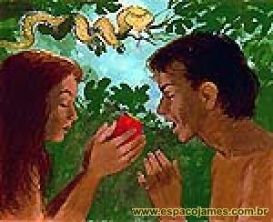 Deus perguntou: "Quem lhe contou que você estava nu? Você comeu da árvore proibida?" Adão respondeu: "A mulher que o senhor me deu me ofereceu a fruta e eu comi".