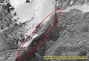 A imagem que o satélite Digital-Globe obteve da formação anômala no monte Ararat - Turquia. Outras imagens do local têm sido registradas por outros satélites e os pesquisadores empenham-se na análise detalhada de forma e dimensões.