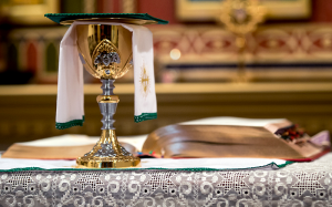 Eleva-se a hóstia e o cálice para recordar-nos que Cristo foi levantado na cruz.