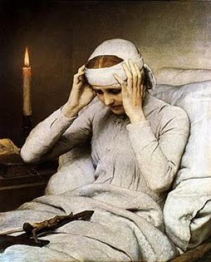 "Vi uma virgem jovem e graciosa, arrastada no meio de soldados, Vestia uma longa veste de lã, de cor parda; um véu cobria-lhe a cabeça, que o cabelo envolvia em tranças.