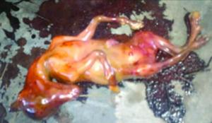 Em seguida, ela foi vista sangrando pela vagina. Pouco depois, surgiu o potro. Quando os jornalistas chegaram ao templo, o animal já estava morto.