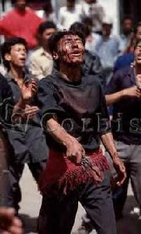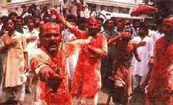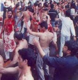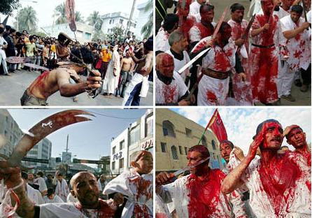No último dia da festividade que dura 10 dias, ocorrem os rituais de martírio, onde homens, meninos e idosos desfilam pelas ruas com o rosto e o corpo cobertos de sangue, em razão da autoflagelação a que se submetem, utilizando-se de navalhas, sabres, facas e correntes. A intenção é relembrar a morte violenta de Hussein em Karbala. A tradição conta que Hussein foi morto pelos homens do califa sunita Jazid. Depois de decapitado, teve o corpo mutilado.