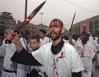A imagem acima, chocante, diga-se de passagem, é cena corriqueira numa das celebrações mais sagradas para os muçulmanos xiitas no mundo todo, a Ashura.