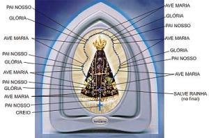 O Santo Rosário compreende a meditação dos vinte mistérios da Fé Católica, divididos em quatro grupos de cinco mistérios - denominados Terço - e nos leva diariamente ao estudo e meditação profunda da Palavra Sagrada da Bíblia e das passagens mais importantes do Evangelho. Aos mistérios originais, recentemente o Papa João Paulo II instituiu novas meditações, sendo que os mistérios do Santo Rosário são: Gozosos, Dolorosos, Gloriosos e os Mistérios de Luz.