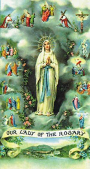 “Certa vez pregava São Domingos sobre a importância de rezarmos o Rosário, quando um homem que o ouvia atenta e piedosamente, teve uma visão espiritual, concedida por Deus, para comprovar a veracidade das palavras de São Domingos: Ele viu muitas almas dos que estavam morrendo, adentrarem profundamente no purgatório. Ao mesmo tempo via Nossa Senhora com uma laçada de ouro, era o Rosário, através do qual a Mãe de Misericórdia retirava desse local de forte purificação, as pobres almas sofredoras.