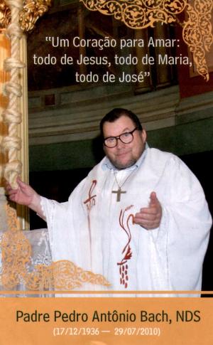 Pe. PEDRO ANTONIO BACH - NDS, nascido em 17/12/1936 e falecido em 29/07/2010, em odor de santidade nos falou com tanto carinho de São José que nos cativou imensamente a todos. Seus restos mortais estão na cidade de Santos (SP) e rezamos para que um dia seja elevado aos altares, por seu zelo pastoral e dedicação aos pequenos (crianças abandonadas) e por sua terna devoção à SAGRADA FAMÍLIA, que tantas graças realizou por seu intermédio por esse Brasil imenso. Quem o conheceu na terra, sabe que pode contar com uma migo íntimo dos três corações a interceder por todos nos céu!