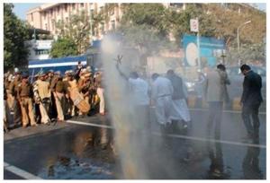 A polícia usou potentes canhões de água suja a pressão contra os manifestantes e colocou os líderes da manifestação em furgões e ônibus, prendendo o Arcebispo de Nova Delhi, Dom Anil Couto, os bispos protestantes Alwan Masih (anglicano) e Roger Gaikwad, o líder evangélico Vijayesh Lal e o católico John Dayal, secretário geral da ‘All India Christian Council’, entre outros líderes.