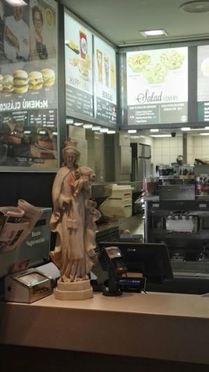 Um estabelecimento do McDonald na Espanha decidiu comemorar o Dia das Bruxas colocando uma imagem de Nossa Senhora do Carmo sangrando, levando o menino Jesus decapitado, o que levou a condenação dos católicos nas redes sociais.