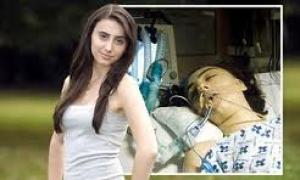 Após o colapso, a jovem foi levada às pressas para o hospital , onde foi mantida viva por máquinas de suporte durante cinco dias, quando passou por duas operações que não foram bem sucedidas.