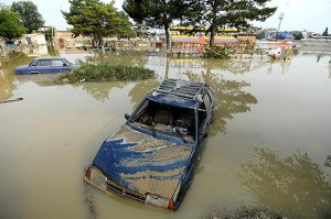Um carro submerso na cidade de krymsk