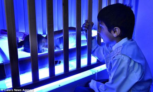 A criança, que vive em Bradford, no Reino Unido, sofre da síndrome Crigler-Najjar, uma condição rara que afeta menos de 200 pessoas no mundo. Areesha não possui uma enzima vital que quebra e elimina a bilirrubina, uma substância química tóxica encontrada nas células vermelhas do sangue. Os raios UV das luzes azuis ajudam a regular a bilirrubina quando entram em contato com a pele e com as células vermelhas.