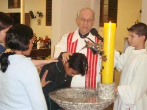 Pois bem...fiquei a "matutar" e hoje comecei a procurar nas fotos de meus alunos do ano passado de catequese e lembrei que fiquei muito feliz e "intrigada" qdo na época, novembro precisamente, após ver as fotos que eu mesma bati de meu aluno Thaum de 11 anos que estava se batizando pouco antes de fazer a primeira comunhão, tbém se formou um terço com a agua batismal.