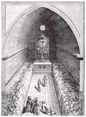 Qual não foi a sua surpresa quando, depois de aberta a porta, constataram que as águas, à semelhança do Mar Vermelho e do Jordão, se mantinham à direita e à esquerda, elevadas como grandes paredes, deixando absolutamente livre e seca a passagem que conduzia ao altar.