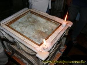 Capela do Anjo. Esta pedra recorda o local da ressurreição. Segunda a tradição, este é um pedaço da pedra em que o anjo encontrava sentando