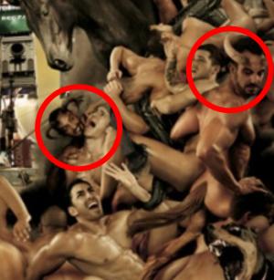 Antes de ver a pintura gay, veja a pintura católica de onde o pintor se inspirou para fazer a pintura deles: