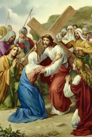 Mas como será esse trono e esse reino, deveria pensar Ela, se meu Filho é uma só chaga da cabeça aos pés, sem forças sob o peso da cruz?