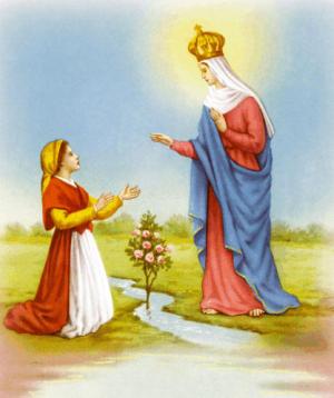 - "Não temas, ó filha, consola-te, que as tuas orações foram atendidas pelo Meu Divino Filho, por Minha intercessão e já te estão preparados os tesouros do Céu. Mas agora, dobra os joelhos por terra e ouve com reverência aquilo que te vou dizer: O mundo cheio de iniqüidades, tinha provocado a indignação do Céu. O Meu Divino Filho queria punir severamente esses homens, autores de iniqüidade e cheios de pecados e de crimes, mas Eu rezei pelos miseráveis pecadores, supliquei longamente e, finalmente Meu Divino Filho aplacou-Se. Por isso, ordena que, por tão assinalado benefício, jejuem uma sexta-feira a pão e água e festejem um sábado em Minha honra, porque Eu quero este sinal de gratidão dos homens pela importantíssima graça por Mim obtida a seu favor. E a gora vai, ó filha, e revela a todos esta Minha vontade".