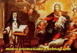 " Tenho por minha esta Igreja; o Altíssimo me mandou que cuidasse dela como Mãe e Senhora. Deves amá-la também, respeitá-la e estimá-la com todo teu coração, terá os tesouros, conseguirás as riquezas do céu que com seu mesmo Autor estão depositadas na Igreja."