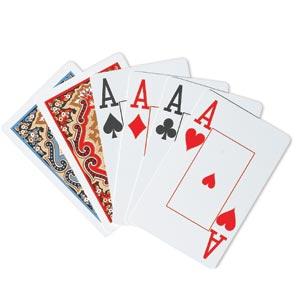 O baralho comum tem 52 cartas divididas em 04 naipes numerados de 02 a 10 e mais as cartas chamadas de figuras: o rei, a rainha, o valete e o ás.