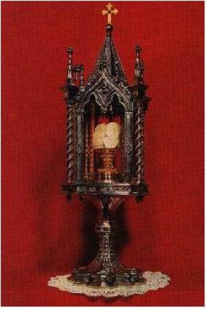 À tarde, na mesma hora em que se deu o roubo, entrou na igreja o Arcebispo, trajando os paramentos da festa de Corpus Christi, seguido do clero e de numerosos fiéis. O Prelado ajoelhou- se em frente ao altar-mor e rompeu em prantos diante das Hóstias encontradas.