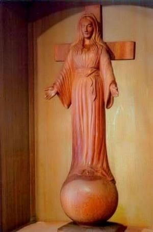 “A estátua de Maria foi o meu primeiro trabalho relacionado com o cristianismo. Das minhas várias estátuas, só aconteceram eventos misteriosos com a estátua de Maria em Yuzawadai... Eu esculpi a estátua de Maria, o globo, e a Cruz num único bloco de madeira, para não haver encaixes... A madeira na qual eu esculpi a estátua de Maria estava muito seca e bastante dura”.