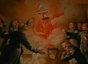 Milagre eucaristico: Ostensório elevou-se do Altar e ficou suspenso no ar e as chamas do incêndio se inclinavam e não tocavam nele.