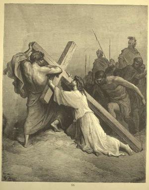 Dulcíssimo Jesus, carregado com a pesada Cruz, caído por terra, levado ao Calvário, como o cordeiro em matadouro.