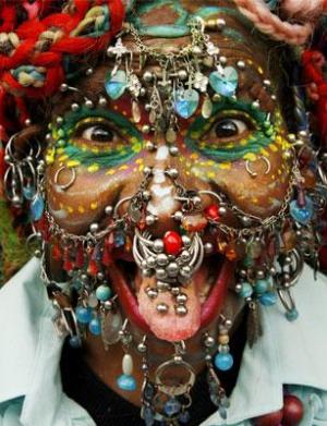 A brasileira Elaine Davidson, que mora na Escócia, posou para uma foto exibindo alguns de seus 5.920 piercings, segundo a agência de notícias Reuters – os acessórios estão espalhados por todo o corpo. Quando quebrou o recorde na quantidade de piercings pela primeira vez, um representante do livro de recordes Guinness constatou em maio de 2000 que ela tinha 462 piercings, incluindo 192 apenas no rosto. Em agosto de 2001, ela tinha 720 em todo o corpo e agora já exibe milhares deles.