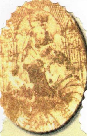 A imagemzinha dentro do relicário. A lupa central permitia vê-la melhor.