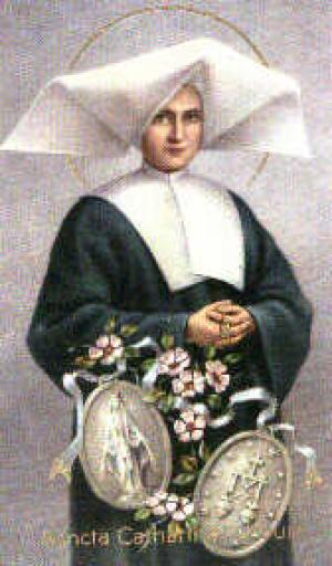 Santa Catarina Labouré, divulgadora da medalha milagrosa, dia de festa: 25 de novembro. Ele é apresentada numa foto vestida com o hábito da congregação das irmãs de caridade, mostrando a medalha milagrosa de dois lados. Nasceu em 2 de maio de 1806, na Borgonha, França, e faleceu em 31 de dezembro de 1876, em Enghien-Reuilly, França. Foi canonizada em 27 de julho de 1947.