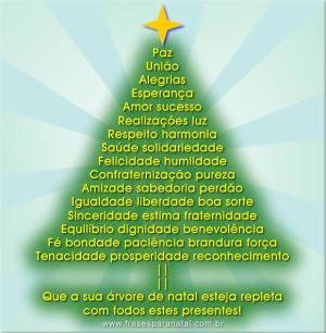Olhando para esta linda árvore de Natal, os anjos cantam: 'Glória a Deus no mais alto dos céus, e paz na terra aos homens por Ele amados'. É assim que se faz um Mundo Novo. É assim que se semeia a paz! Você deu a muitos a graça de ter um Feliz Natal!