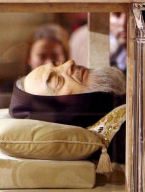 O corpo, sepultado em setembro de 1968, quatro dias depois da sua morte, foi exumado em março passado, no santuário de San Giovanni Rotondo, por uma comissão médica, em bom estado de conservação, sem sinal dos famosos estigmas, que apareceram em 1911 e desapareceram pouco antes da sua morte.