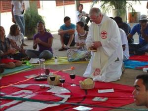 Que triste ao ver celebrar o sacrifício da missa no chão! Não se pode compreender como isso alimenta a fé e a devoção. Na missa tridentina é bem diferente, o centro da missa está focalizado em Deus, através de Maria Santíssima, Medianeira de todas as graças. As rubricas tridentinas são rigorosas para quem celebra, não permitindo inovações que atentam o culto católico.