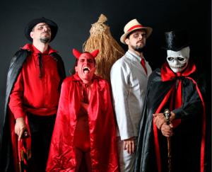Zé Pelintra e Omulú no vocal, Exú Caveira na guitarra, Exú Lúcifer no baixo, Ogum na bateria e Pomba Gira na percussão
