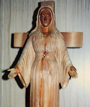 A imagem de um metro de altura foi esculpida de um único bloco de madeira de uma árvore Katsura. Era uma reprodução daquela das aparições da Mãe de Deus à uma mulher em Amsterdã, após a Segunda Guerra Mundial, na Holanda.
