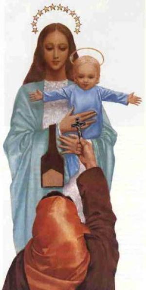 Maria LoIi, levanta Jacinta a fim de receber um beijo da Virgem.