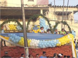 Durante o percurso, 25 homenagens devem ser feitas. A primeira é da Secretaria Municipal de Saúde (Semsa), onde o coral da instituição, acompanhado pela banda do Ministério de Música Anjos de Deus, apresenta a canção “Mãe do novo homem”, dentre outros cantos católicos. A enfermeira Carmélia Almeida participa do coral há 6 anos. "É uma satisfação muito grande poder participar homenageando a Nossa Senhora. Cantar para ela nos traz muitas bençãos e é uma recompensa enorme". Lauro Correa, que também participa há 6 anos do coral diz que é uma grande satisfação homenagear a padroeira, cantando com alegria. "É uma preparação para o momento único homenagear Nossa Senhora. É gratificante", diz ele.