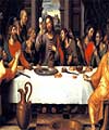 Contemplamos a instituição da Eucaristia. Jesus nos dá seu próprio corpo e sangue como alimento espiritual para nossas almas. É a entrega total e a maior prova de Seu Amor por toda a humanidade. Mesmo sabendo que ia ser traído e entregue ao sacrifício Ele nos deu uma mostra suprema de Sua divindade.