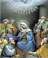 Contemplamos a vinda do Espírito Santo sobre os apóstolos reunidos com a Virgem Maria em Jerusalém. A vinda do Prometido, o Espírito Santo Paráclito: o advogado-defensor. O Paráclito, o Espírito Santo que o Pai enviará em meu nome, vos ensinará todas as coisas e vos fará recordar tudo os que vos disse.