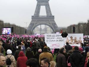 Várias centenas de milhares de pessoas se concentraram neste domingo diante da Torre Eiffel, em Paris, para protestar contra o plano do presidente François Hollande de legalizar até junho o casamento entre homossexuais e a adoção de crianças por casais do mesmo sexo.