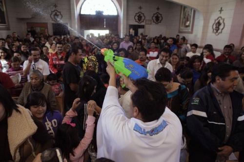 Padre mexicano benze fiéis com pistola de brinquedo (Foto: Daniel Becerril/Reuters)