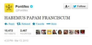Artigo N.º 10773 - Papa Francisco alcançou os três milhões e trezentos mil seguidores no twitter.