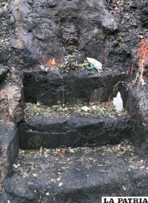 Operários bolivianos retiraram o altar para rituais satânicos e oferendas a entidades andinas da estrada que liga as cidades de La Paz e El Alto, por onde o papa Francisco passará na visita que fará ao país na semana que vem.