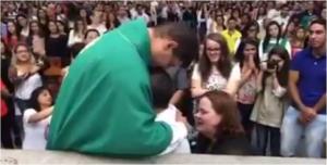 É possível observar as pessoas que estão próximas ao altar em profunda emoção.