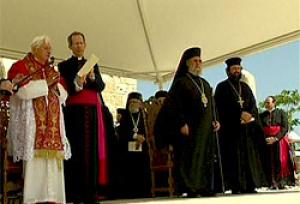Nicósia, 04 Jun. 10 / 01:15 pm (ACI).- Na igreja Ágia Kiriaki Chrysopolitissa, lugar de culto ortodoxo aberto desde 1987 aos católicos e anglicanos por vontade do então bispo ortodoxo de Paphos e atual arcebispo do Chipre, Sua Beatitude Crisóstomo II, o Papa Bento XVI assinalou que "a comunhão eclesiástica na fé apostólica é ao mesmo tempo um dom e uma chamada à missão", tarefa urgente que o mundo necessita sedento da verdade que é Jesus Cristo.