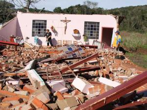 Em Erechim, ventos superiores a 100 km/h e granizo arrancaram árvores e danificaram postes, deixando grande parte da região sem luz. Estradas foram interrompidas e uma igreja desabou.