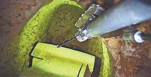 Tabor e Rami Arav conseguiram um braço robótico equipado com uma câmera para fotografar o subterrâneo através de um respiradouro do mesmo.
