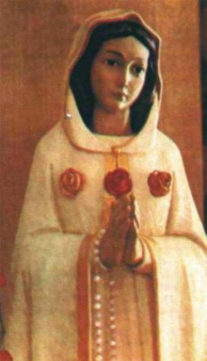 Rosa Mística, Virgem Imaculada, Mãe da Graça, para honra de Vosso Divino Filho, nos ajoelhamos diante de Vós implorando a misericórdia de Deus: não por nosso méritos mas pelo amor de Vosso Coração Maternal, nós Vos suplicamos que nos concedais proteção e graça com a certeza de que nos haveis de atender. Ave Maria...