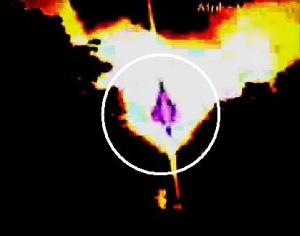 Várias pessoas gravaram em celulares, e essa é uma das gravações. Há um núcleo branco com enterno azulado ou purpura, o que foi considerado pelos fiéis como a santa com o seu véu ao vento.